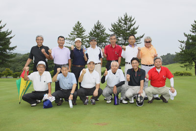 午前8時05分。特別企画還暦記念ゴルフコンペ開始。大雨の予報も何のその、スルーで18ホールを楽しむぞ!と老いを見せ始めた26の瞳が微笑む。しかし、次第に雨足が強くなりやがて大雨に。それでも負けじとクラブを振り、池と化したグリーンで苦しむ面々に、6ホール残したところでGoGo倶楽部相場利治会長から競技中止のコール。11時30分、ゴルフコンペは少しの悔いを残して終了した。