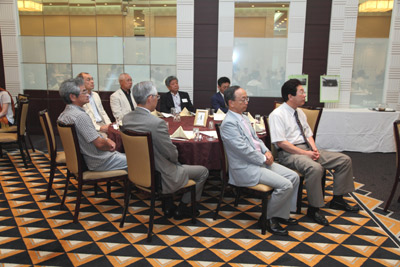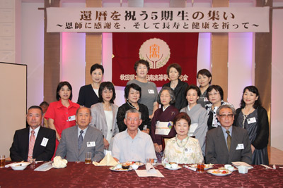 午後4時。5期生75名、恩師5名が席に着く。同期生の 浄弘寺16世住職