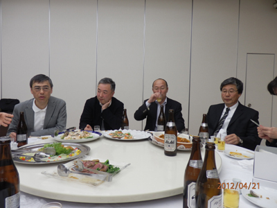 平成24年4月21日(土)秋田市の「ふきみ会館」にて、午後2時より教育振興基金運営委員会、午後3時より同窓会理事会、午後4時より同窓会総会が開催されました。 主な内容は、平成23年度の事業報告および決算報告、平成24年度の事業計画および予算、そして、創立50周年特別記念事業実行委員会設置についてでしたが、異議なく全て承認されました。 これにより、同窓会による募金活動は2千万円を目標に展開することになりました。 また、懸案であった第9号名簿事業については、名簿会計を終結する事になりました。これに伴い約6百万円になった教育振興基金は、全額を50周年特別事業の助成にあてることにいたします。 そして、教育振興基金には4百万円になるまで一般会計から積立を行い、今後の母校教育事業の助成に寄与できるようにしてまいります。 なお、総会終了後の午後5時より懇親会が開催されました。来賓として4月から着任された佐藤健公校長をはじめ、工藤昭二副校長、櫻田博憲教頭(14期)、庄司強先生(12期)、高橋政晶先生(18期)が出席され、花を添えて頂きました。