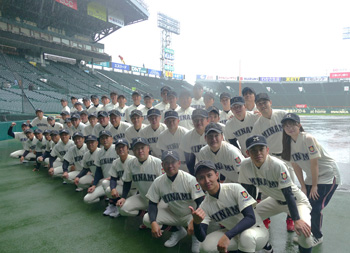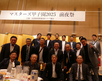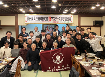 秋田南高校野球部OBチーム(年齢は20代から60代)は、夏の秋田県予選を勝ち抜き、令和7年11月8日、9日に開催された「マスターズ甲子園2025 第22回大会」に参加してきました。11月7日は、大会前夜祭(会場:都ホテル尼崎)が開催され、全国より選抜された20チームが集まりお互いにエールの交換をし、大いに盛り上がりました。 11月8日は、快晴の阪神甲子園球場にて開会式が開催され、秋田南高校OBチームは各自憧れの甲子園に感銘を受けながら入場行進を行い、初めて甲子園球場のグラウンドに立ちました。その後、明日の試合に向け大阪市内の居酒屋にて決起集会を行い、世代の違いを乗り越え盛り上がりました。 11月9日は、朝からの強い雨で2日目の試合はすべて中止と判断され、試合は出来ませんでしたが大会事務局の配慮で甲子園球場の裏側を見学させていただきました。室内練習場でのキャッチボール、グラウンド内のベンチ見学、ベンチ前での校歌斉唱、雨中のグラウンド内撮影等が出来ました。 今回のマスターズ甲子園2025大会に参加して、肝心の甲子園球場で親善試合は叶いませんでしたが、各自よい思い出にはなったのではないでしょうか。甲子園で試合に勝つ!という宿題は置いてきましたが、リベンジに向け2026年大会も出場を果たし、甲子園に置いてきた忘れ物を取りにいきたいと思います。 これからも同窓生の皆様のご支援をよろしくお願い申し上げます。