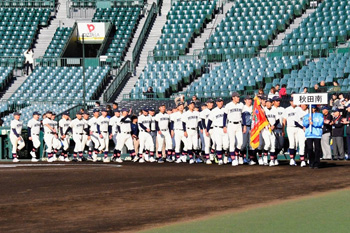 この度の阪神甲子園球場で開催された「マスターズ甲子園2025(第22回大会)」の出場に際しましては、皆さまから温かいご声援を賜り、誠にありがとうございました。 我々、秋田南高校野球部OB(選手49名、事務局3名)は11月8、9日に開催された本大会に初めて出場して参りました。初日は秋晴れの下、憧れの甲子園球場で入場行進はできたものの、翌朝からの雨の影響により、二日目の交流試合(和歌山県代表桐蔭高校OB戦)は中止となってしまいました。参加者一同「不完全燃焼」の状態ですが、来年以降、再び予選を勝ち抜き、今度こそ甲子園球場で野球がしたいと思っております。 参加にあたり、時間等の余裕もなく寄付を募ったところ、多くのご支援を賜りました。皆様からの「南校を甲子園に…」との想いを受け、OB一同、心から感謝を申しあげます。 今後とも一層のご指導ご鞭撻を賜りますようお願い申しあげます。