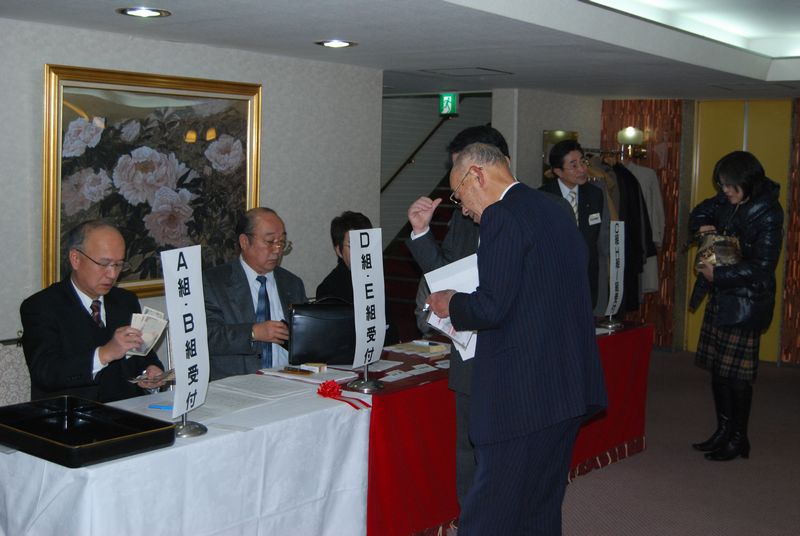 時間の経つのも早いもので、 あっという間に定刻になり、 恩師の先生方には還暦の記念品を、 当時女子学生だった方々から、 贈呈がありました。 また、 全員で校歌を斉唱し、 最後に東京四期会から出席してくれた、 相場勉君 (4・A) よりの、 中締めにて、 還暦の会は終了しました。