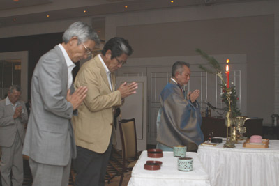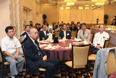 午後4時。5期生75名、恩師5名が席に着く。同期生の 浄弘寺16世住職