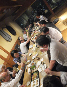 佐藤校長先生、山岡同窓会会長、大森東京南翔会会長からご挨拶を頂き、母校、同窓生の活躍などを伺うことができ、同窓生として嬉しくも誇らしく拝聴しました。蕗の会初代会長の樋渡氏(1期)の乾杯で祝宴は始まりました。懇親会では、一人ひとり全員から近況の報告をしてもらい、皆さんスピーチが上手くて、おおいに盛り上がりました。役員で余興として♪恋するフォーチュンクッキーを披露し、最後は校歌を合唱して、西塚副会長(6期)の締めの挨拶で無事に総会と懇親会は終わりました。